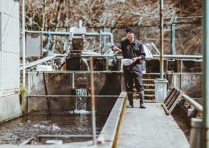 Growing up in the rice fields of Niigata, he’s always loved salmon. He once lived in the city, surrounded by buildings. Now he’s surrounded by forest trees. He feels this job is his calling. He wants to prove that it’s possible to make a good living in the fishing industry, which is said to be in decline. That’s his dream.