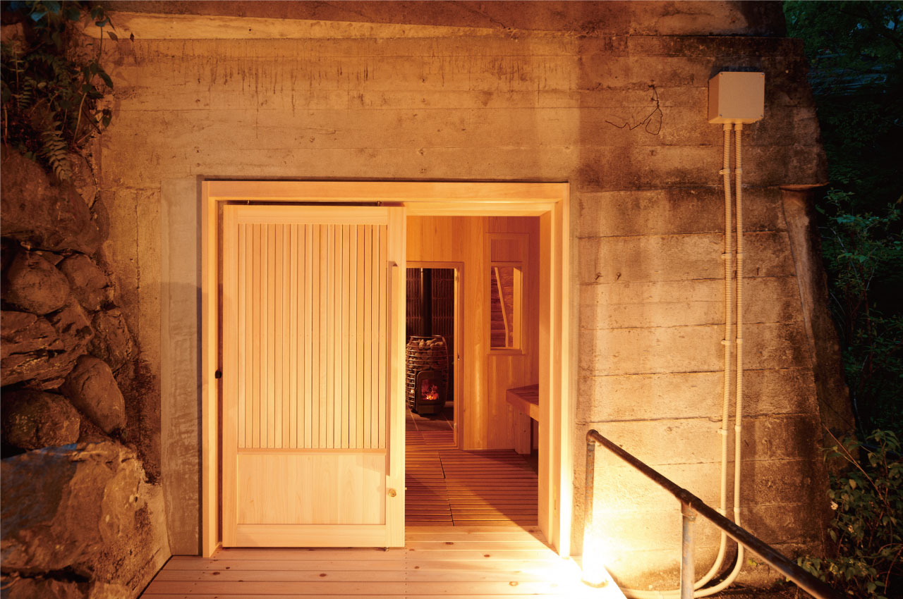 Wood-Fired Sauna Immersed in Nature We’ve repurposed a concrete storehouse on the Satologue grounds and lined it with locally harvested wood to create a sauna that combines the forestry traditions of Okutama with Finnish wellness practices.